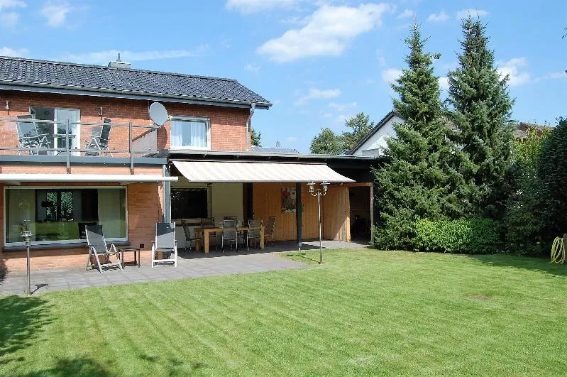 Ansicht aus dem Garten Blick von der Dachterrasse Wohnbereich Loggia und Freisitz Blick aus dem Garten Gäste-Bad unten Blick in die Wohnküche Teil Wohnbereich Kellerausbau mit Steinteppichböden Teilansicht Bad oben mit bodentiefer Dusche Carport mit Schiebetor sehr schöne Umgebung
